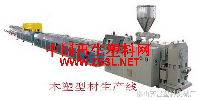 机组主要用于生产PVC、PP等材料的各种塑料门、窗异型材、护墙板、天花板等。主机采用高效挤出机,变频调速,依据各种规格的产品配置不同规格的主机、定型台、牵引机、自动切割机及堆放架,定型台采用不锈钢接水盘,配国产名牌真空泵、前、后、左、右、上、下均可调节,牵引机传动为同步箱方向节,带气缸自动升降,履带式牵引,切割长度定位采用行程开关定长切断,堆放架长度为6米,气动翻转。